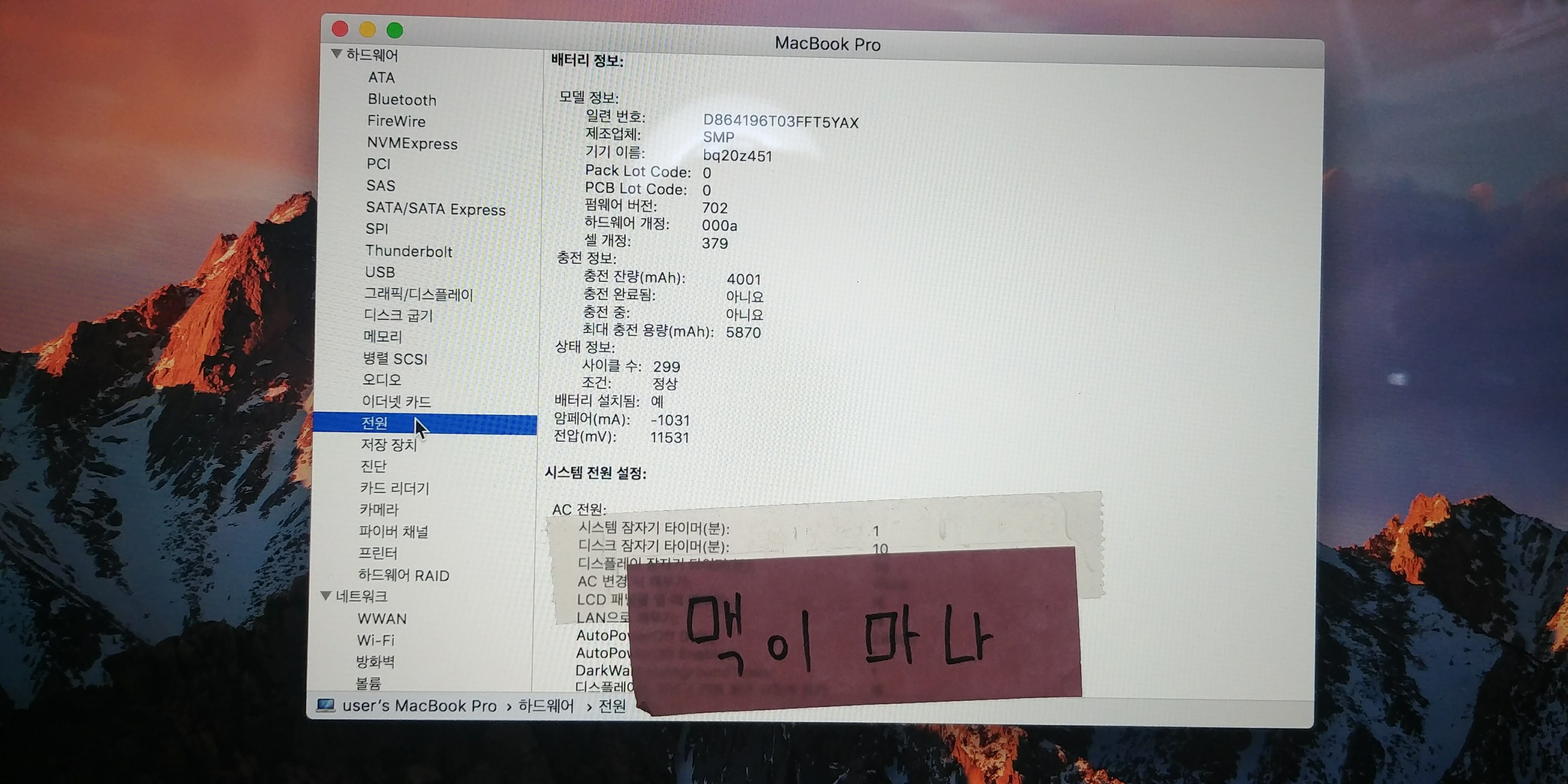 사이클 수 299 최대충전용량 5870